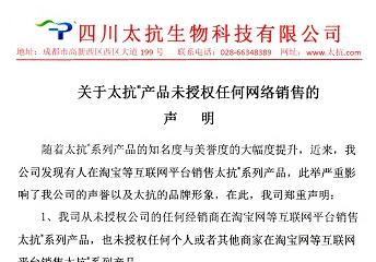 關(guān)于太抗?產(chǎn)品未授權(quán)任何網(wǎng)絡(luò)銷售的聲明發(fā)布日期:2017.05.15點(diǎn)擊量:6666 -