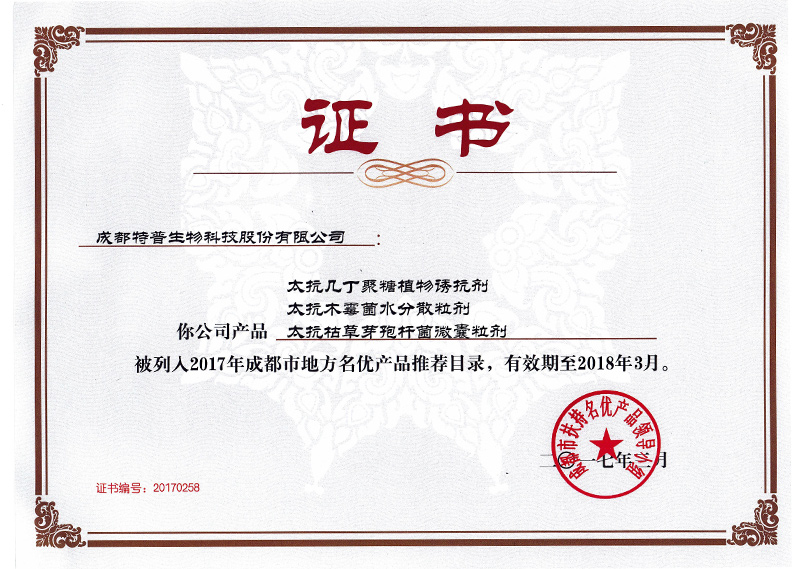 2017成都市名優(yōu)產(chǎn)品證書 -