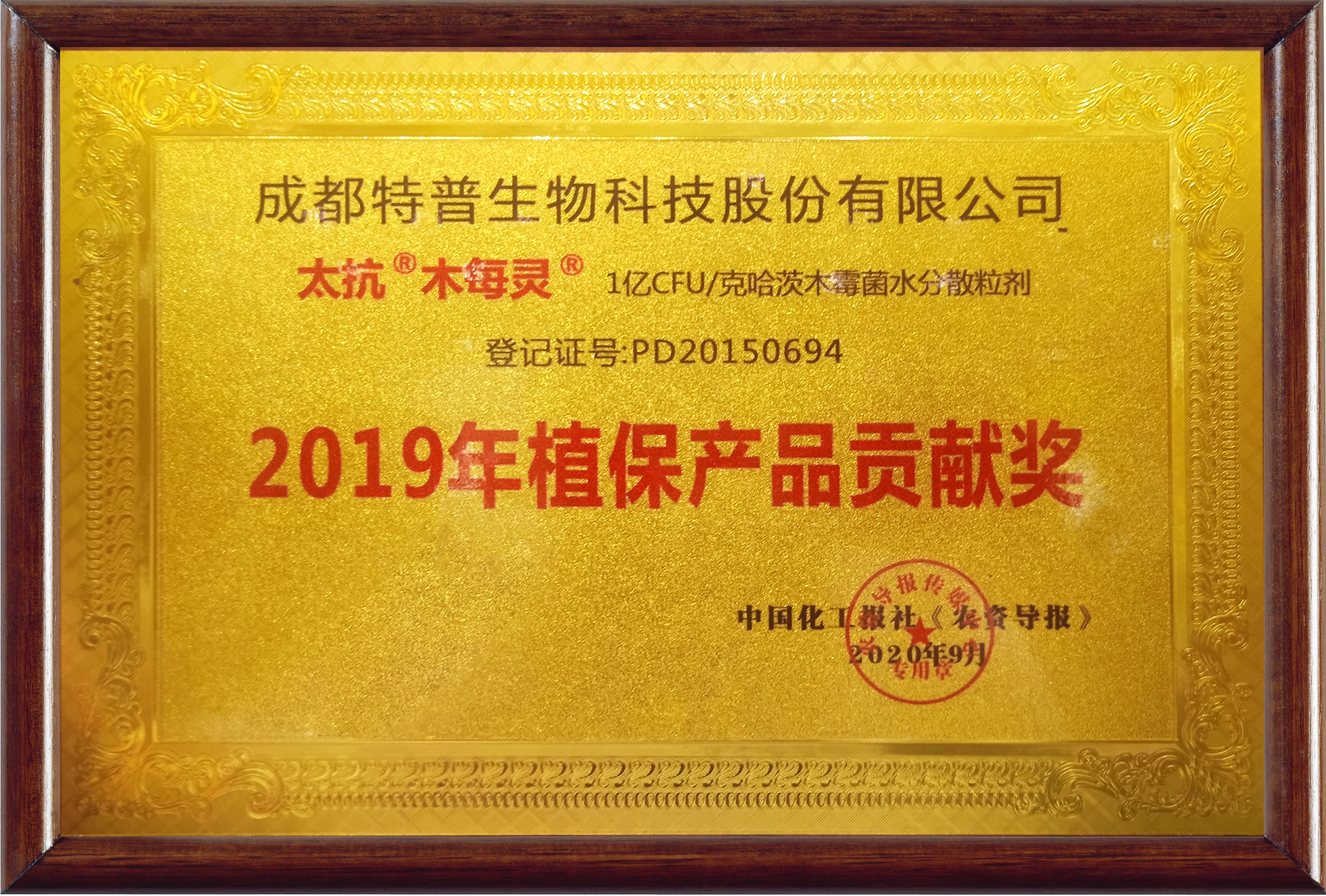 2019年植保產(chǎn)品貢獻(xiàn)獎(jiǎng)—木每靈 -