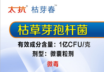 太抗系列生物農(nóng)藥介紹——枯芽春篇發(fā)布日期:2016.03.02點(diǎn)擊量:8058一、產(chǎn)品特點(diǎn)特點(diǎn):我國唯一正式登記為微膠囊劑的生物殺菌劑,重點(diǎn)用于土傳病害防治,尤其是對枯萎病防治,促進(jìn)根系生長;食品安全性:毒性低于食鹽,有機(jī)認(rèn)證在辦理中;農(nóng)作物安全:對作物安全無藥害。 二、枯草芽孢桿... -